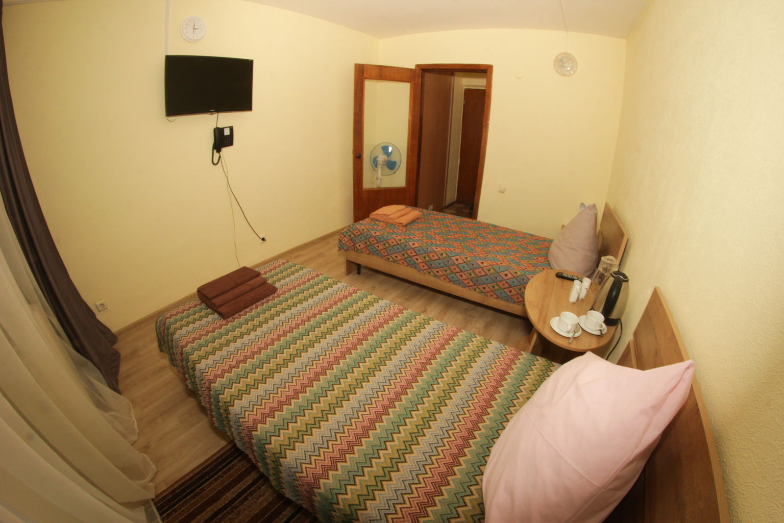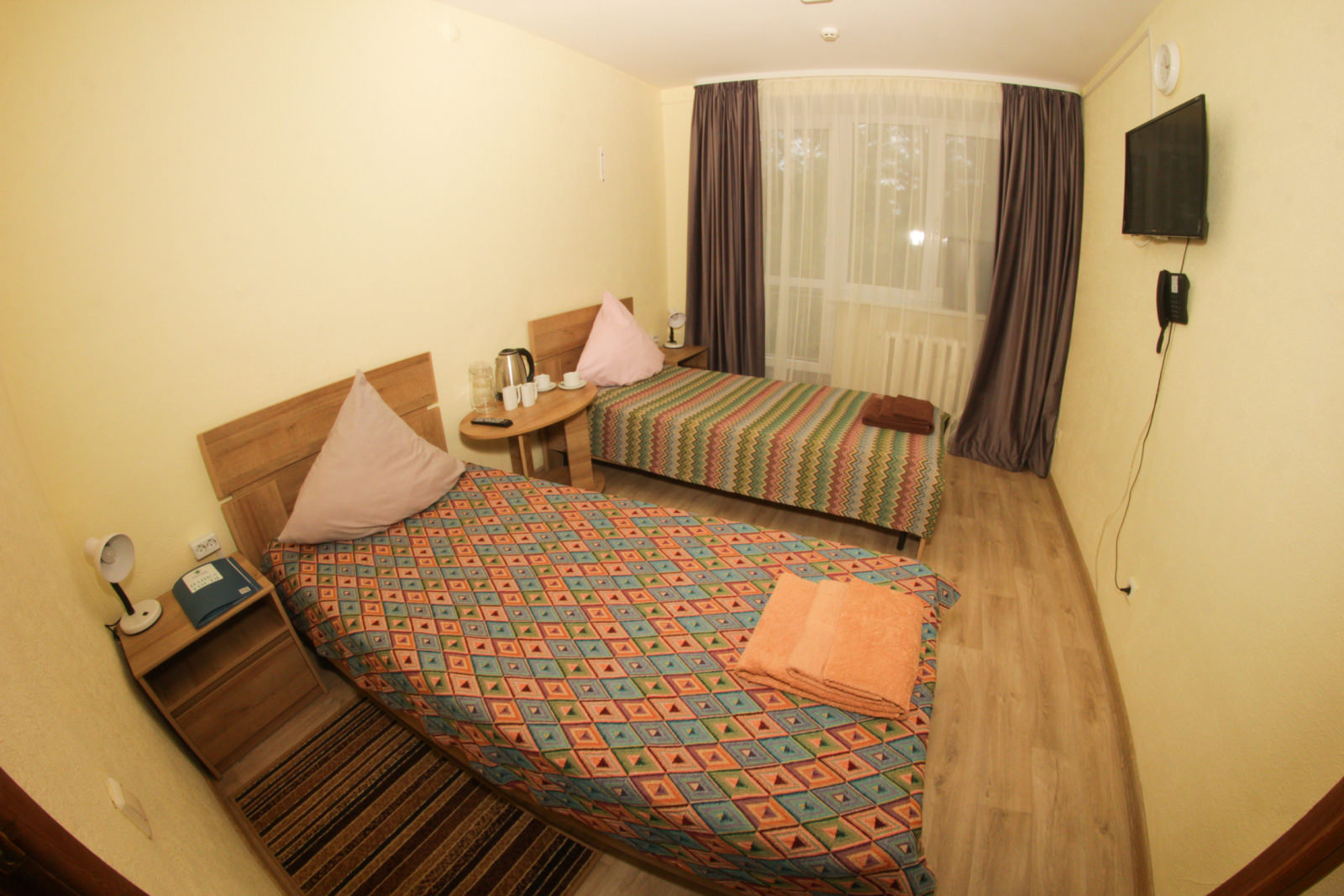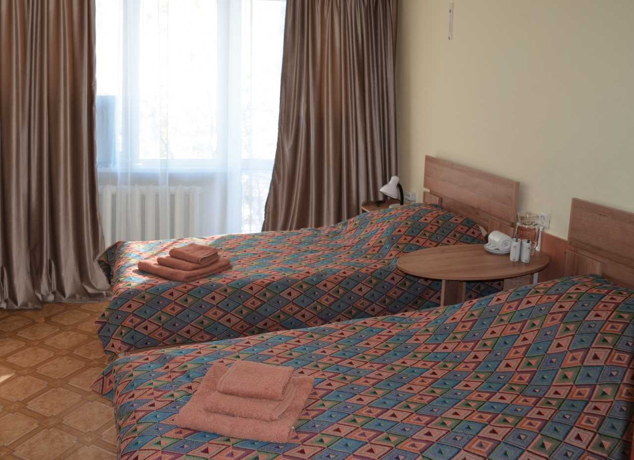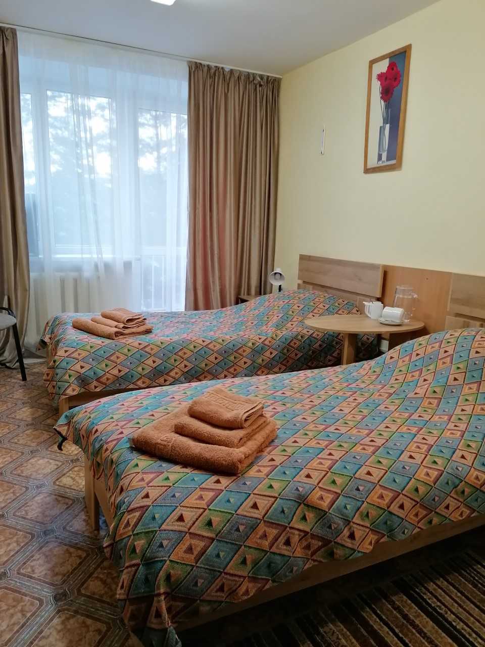 Площадь номера - 18 кв.м. 2 осн. места. 1 доп. место. Балкон. Мебель: зеркало, кровати односпальные, прикроватные тумбочки, столик журнальный, шкаф. Оборудование: телевизор, холодильник, чайный набор посуды. Санузел: с душем, туалетные принадлежности, халат ((махровый и вафельный)). Сервис: смена полотенец, смена постельного белья, уборка номера.